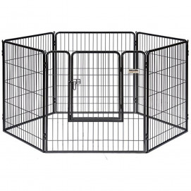 • Jaula para mascotas plegable de alambre metálico negro.
