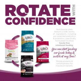Los ácidos grasos omega-3 y omega-6 equilibrados junto con L-carnitina, taurina, cloruro de colina y suplementos de DL metionina para promover la salud del corazón hacen que las fórmulas sin granos de NutriSource® se destaquen.